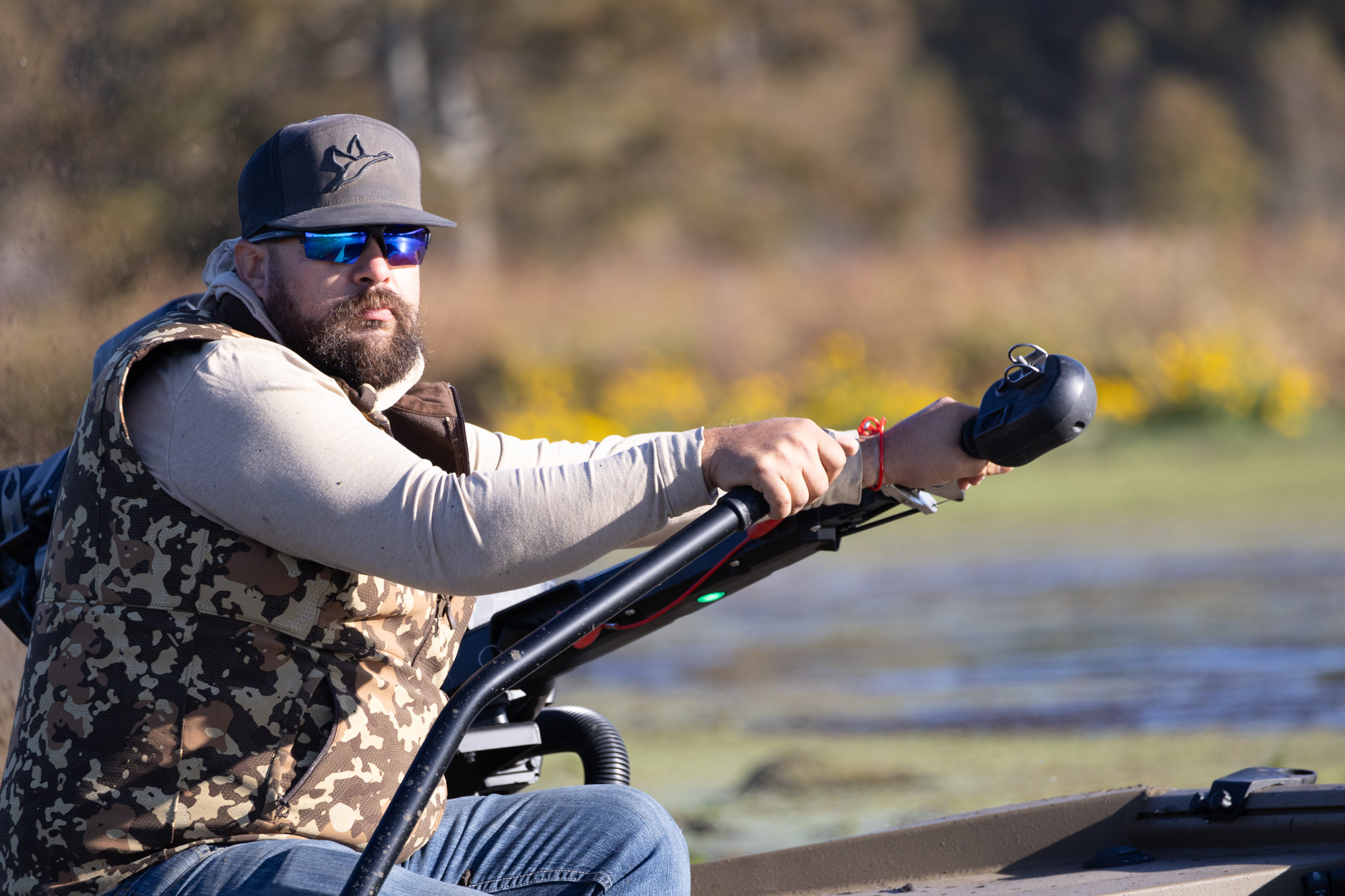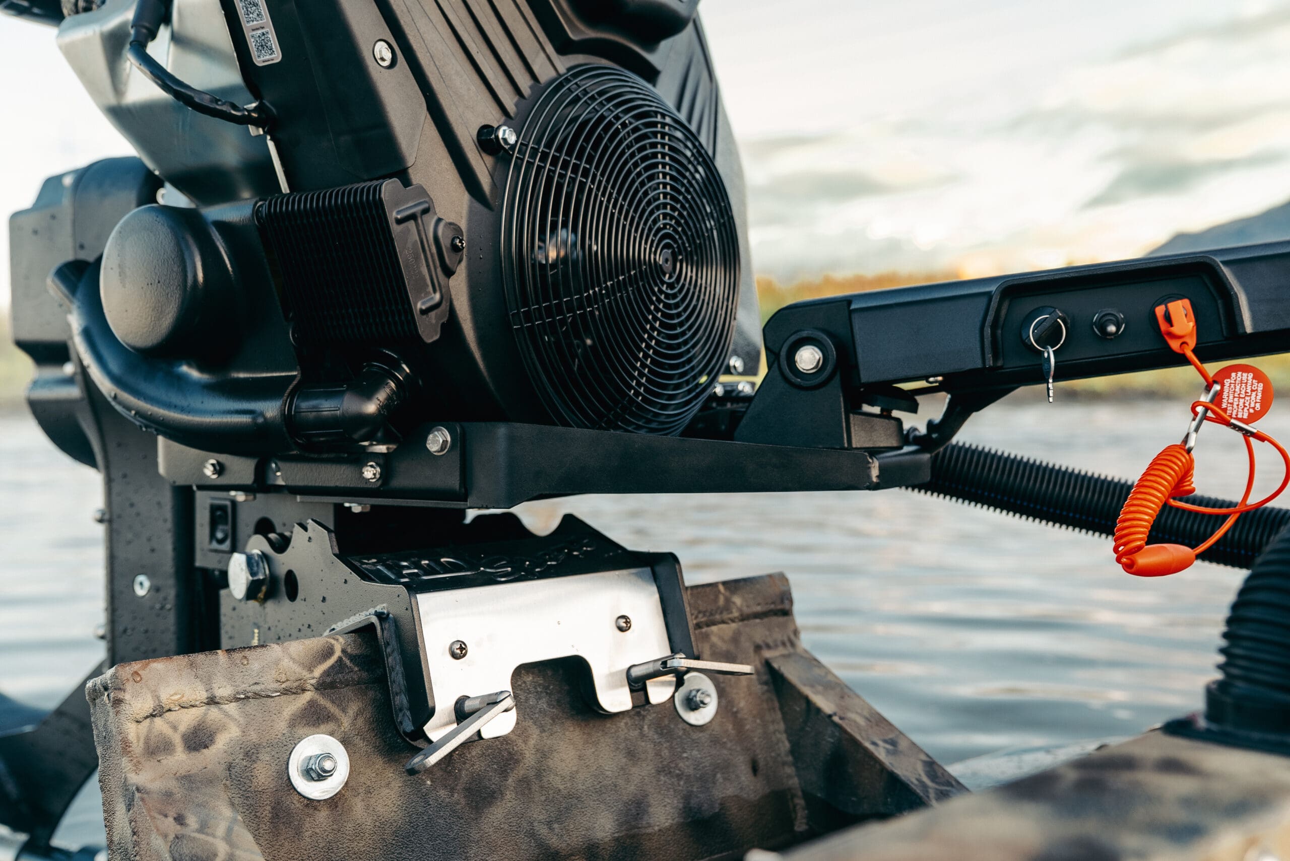 Meet Mud Buddy’s most advanced shallow water surface drive. The newly designed outboard style handle offers full adjustability with 7 positions left-to-right to fit any operator arm length or boat width. For added convenience, the handle can be operated comfortably from a standing or sitting postion.